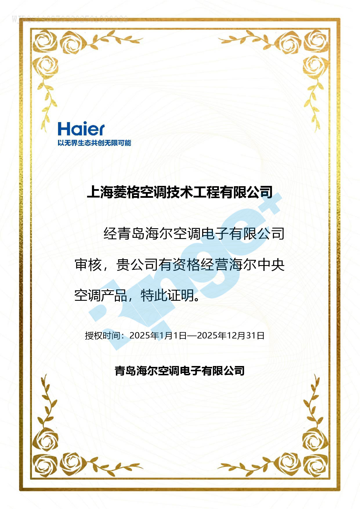 海爾授權(quán)書(shū)